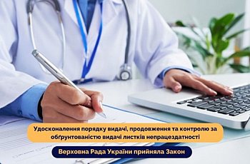 Верховна Рада України прийняла Закон щодо удосконалення порядку видачі, продовження та контролю за обґрунтованістю видачі листків непрацездатності