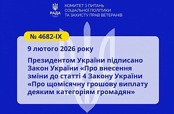 Президентом України підписано Закон України «Про внесення зміни до статті 4 Закону України «Про щомісячну грошову виплату деяким категоріям громадян»