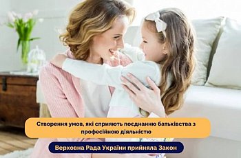 Верховна Рада України прийняла Закон щодо підтримки сімей з дітьми та створення умов, які сприяють поєднанню батьківства з професійною діяльністю