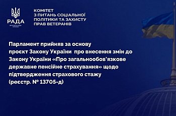 Парламент підтримав законопроект про внесення змін до Закону України «Про загальнообов’язкове державне пенсійне страхування» щодо підтвердження страхового стажу