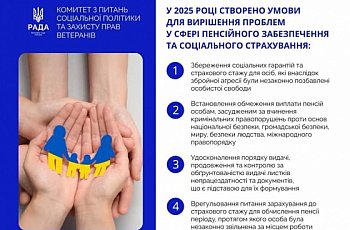 У 2025 році Комітет соціальної політики та захисту прав ветеранів визначив та усунув низку правових прогалин у сфері пенсійного забезпечення та соціального страхування