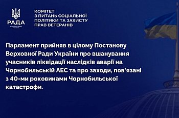 Парламент прийняв в цілому Постанову Верховної Ради України про вшанування учасників ліквідації наслідків аварії на Чорнобильській АЕС та про заходи, пов’язані з 40-ми роковинами Чорнобильської катастрофи