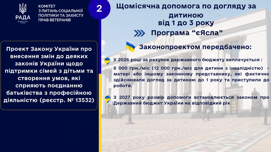 1. Встановлення розмірів державної допомоги у 2026 році та визначення їх надалі у наступних роках законом про Державний бюджет України.