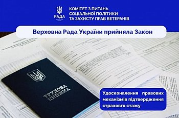 Верховна Рада України прийняла закон щодо вдосконалення правових механізмів підтвердження страхового стажу