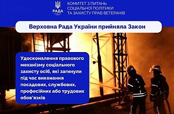 Верховна Рада України прийняла закон щодо удосконалення механізму соціального захисту осіб, які загинули під час виконання посадових обов’язків