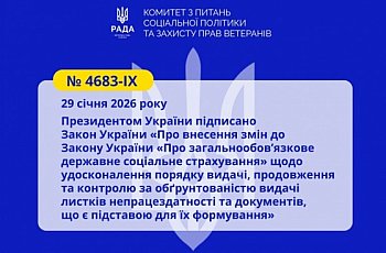 Президентом України підписано Закон України «Про внесення змін до Закону України «Про загальнообов’язкове державне соціальне страхування» щодо удосконалення порядку видачі, продовження та контролю за обґрунтованістю видачі листків непрацездатності та документів, що є підставою для їх формування»