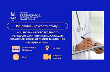 Засідання «круглого столу» на тему: «Оцінювання повсякденного функціонування: шлях пацієнта для встановлення інвалідності, виклики та проблематика»